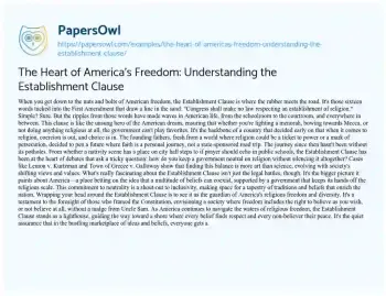 The Heart of America's Freedom: Understanding the Establishment Clause. (2024, Feb 20). Retrieved from https://hub.papersowl.com/examples/the-heart-of-americas-freedom-understanding-the-establishment-clause/