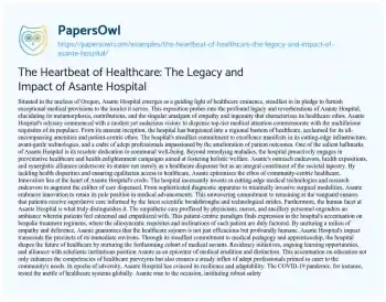 The Heartbeat of Healthcare: The Legacy and Impact of Asante Hospital. (2024, Jun 01). Retrieved from https://hub.papersowl.com/examples/the-heartbeat-of-healthcare-the-legacy-and-impact-of-asante-hospital/