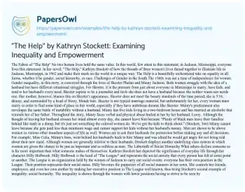 "The Help" by Kathryn Stockett: Examining Inequality and Empowerment. (2023, Aug 09). Retrieved from https://hub.papersowl.com/examples/the-help-by-kathryn-stockett-examining-inequality-and-empowerment/