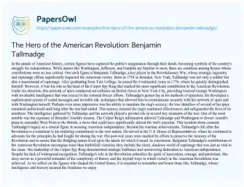The Hero of the American Revolution: Benjamin Tallmadge. (2024, Apr 01). Retrieved from https://hub.papersowl.com/examples/the-hero-of-the-american-revolution-benjamin-tallmadge/
