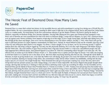 The Heroic Feat of Desmond Doss: How Many Lives He Saved. (2024, Jul 21). Retrieved from https://hub.papersowl.com/examples/the-heroic-feat-of-desmond-doss-how-many-lives-he-saved/