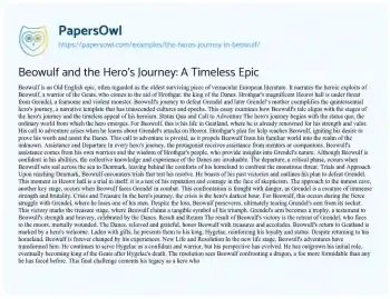 Beowulf and the Hero's Journey: A Timeless Epic. (2020, Mar 21). Retrieved from https://hub.papersowl.com/examples/the-heros-journey-in-beowulf/