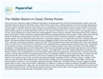 The Hidden Racism in Classic Disney Movies. (2024, May 21). Retrieved from https://hub.papersowl.com/examples/the-hidden-racism-in-classic-disney-movies/