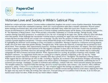 Victorian Love and Society in Wilde’s Satirical Play. (2021, Mar 20). Retrieved from https://hub.papersowl.com/examples/the-hidden-truth-of-victorian-marriage-between-the-lines-of-oscar-wildes-poetry/