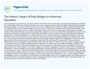The Historic Impact of Ruby Bridges on American Education. (2024, May 21). Retrieved from https://hub.papersowl.com/examples/the-historic-impact-of-ruby-bridges-on-american-education/