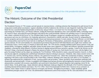 The Historic Outcome of the 1796 Presidential Election. (2024, Jun 17). Retrieved from https://hub.papersowl.com/examples/the-historic-outcome-of-the-1796-presidential-election/