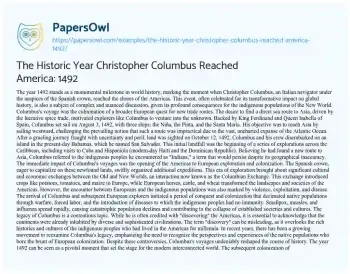 The Historic Year Christopher Columbus Reached America: 1492. (2024, May 21). Retrieved from https://hub.papersowl.com/examples/the-historic-year-christopher-columbus-reached-america-1492/