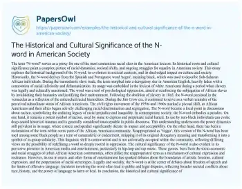 The Historical and Cultural Significance of the N-word in American Society. (2024, May 12). Retrieved from https://hub.papersowl.com/examples/the-historical-and-cultural-significance-of-the-n-word-in-american-society/