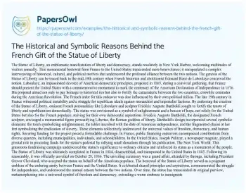 The Historical and Symbolic Reasons Behind the French Gift of the Statue of Liberty. (2024, May 28). Retrieved from https://hub.papersowl.com/examples/the-historical-and-symbolic-reasons-behind-the-french-gift-of-the-statue-of-liberty/