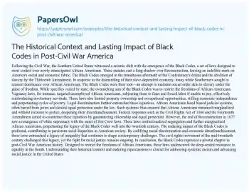 Order now The Black Codes were their tool—an attempt to maintain social order akin to slavery under the guise of freedom.