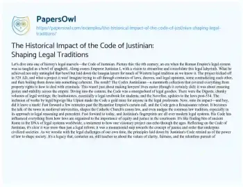 The Historical Impact of the Code of Justinian: Shaping Legal Traditions. (2024, Feb 20). Retrieved from https://hub.papersowl.com/examples/the-historical-impact-of-the-code-of-justinian-shaping-legal-traditions/