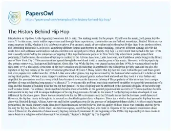 The History Behind Hip Hop. (2021, Apr 19). Retrieved from https://hub.papersowl.com/examples/the-history-behind-hip-hop/