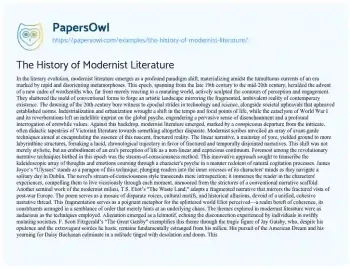 The History of Modernist Literature. (2024, May 01). Retrieved from https://hub.papersowl.com/examples/the-history-of-modernist-literature/