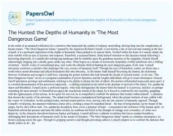 The Hunted: the Depths of Humanity in 'The Most Dangerous Game'. (2024, Mar 25). Retrieved from https://hub.papersowl.com/examples/the-hunted-the-depths-of-humanity-in-the-most-dangerous-game/