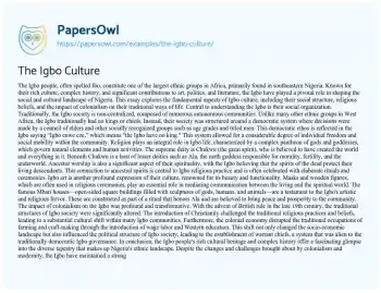 The Igbo Culture. (2024, Apr 22). Retrieved from https://hub.papersowl.com/examples/the-igbo-culture/