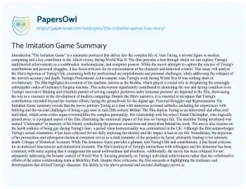 The Imitation Game Summary. (2022, May 01). Retrieved from https://hub.papersowl.com/examples/the-imitation-game-true-story/