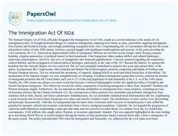 The Immigration Act Of 1924. (2024, May 01). Retrieved from https://hub.papersowl.com/examples/the-immigration-act-of-1924/