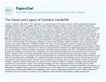 The Impact and Legacy of Cornelius Vanderbilt. (2024, May 28). Retrieved from https://hub.papersowl.com/examples/the-impact-and-legacy-of-cornelius-vanderbilt/
