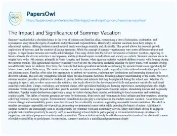 The Impact and Significance of Summer Vacation. (2025, Mar 29). Retrieved from https://hub.papersowl.com/examples/the-impact-and-significance-of-summer-vacation/