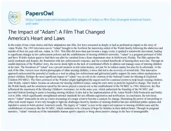 The Impact of "Adam": A Film That Changed America's Heart and Laws. (2024, Feb 20). Retrieved from https://hub.papersowl.com/examples/the-impact-of-adam-a-film-that-changed-americas-heart-and-laws/