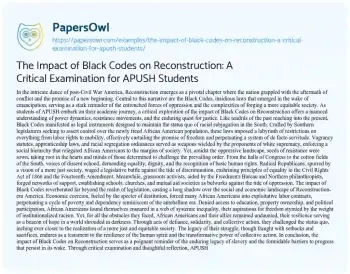 In conclusion, the impact of Black Codes on Reconstruction serves as a poignant reminder of the enduring legacy of slavery and the formidable barriers to progress that persist in its wake. Through critical examination and thoughtful reflection, APUSH students are invited to engage with the complexities of history, interrogating the narratives of power and resistance that have shaped the course of American society. In the crucible of Reconstruction, they are challenged not only to understand the past but to confront its implications for the present and future, forging a path toward a more just and equitable world.