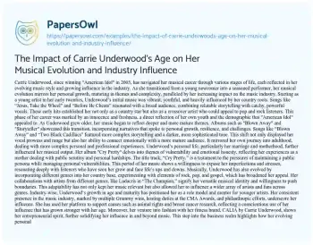 The Impact of Carrie Underwood's Age on Her Musical Evolution and Industry Influence. (2024, May 12). Retrieved from https://hub.papersowl.com/examples/the-impact-of-carrie-underwoods-age-on-her-musical-evolution-and-industry-influence/