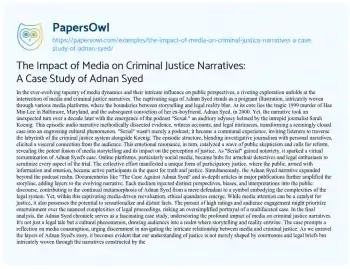 The Impact of Media on Criminal Justice Narratives: A Case Study of Adnan Syed. (2024, Mar 12). Retrieved from https://hub.papersowl.com/examples/the-impact-of-media-on-criminal-justice-narratives-a-case-study-of-adnan-syed/