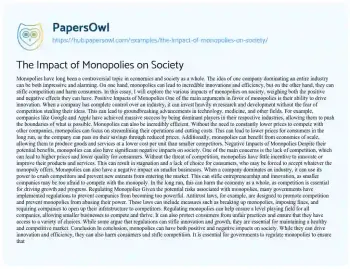 The Impact of Monopolies on Society