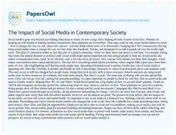 The Impact of Social Media in Contemporary Society. (2024, Sep 17). Retrieved from https://hub.papersowl.com/examples/the-impact-of-social-media-in-contemporary-society/
