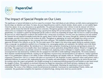 The significance of special individuals in our lives cannot be overstated. These individuals not only influence our daily choices and perspectives but also shape our identities and values. For many, the most impactful person could be a family member, friend, mentor, or even a public figure whom they admire. In my case, that person is my grandmother. The profound relationship I share with her reveals the intricate web of love, wisdom, and life lessons that form the foundation of our connection.