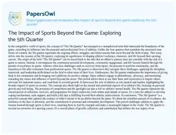 The Impact of Sports Beyond the Game: Exploring the 5th Quarter. (2024, Apr 01). Retrieved from https://hub.papersowl.com/examples/the-impact-of-sports-beyond-the-game-exploring-the-5th-quarter/