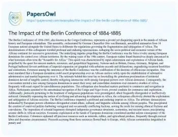 The Impact of the Berlin Conference of 1884-1885. (2024, May 21). Retrieved from https://hub.papersowl.com/examples/the-impact-of-the-berlin-conference-of-1884-1885/