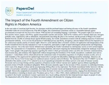 The Impact of the Fourth Amendment on Citizen Rights in Modern America. (2024, May 21). Retrieved from https://hub.papersowl.com/examples/the-impact-of-the-fourth-amendment-on-citizen-rights-in-modern-america/