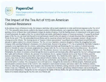 The Impact of the Tea Act of 1773 on American Colonial Resistance. (2024, Jun 17). Retrieved from https://hub.papersowl.com/examples/the-impact-of-the-tea-act-of-1773-on-american-colonial-resistance/
