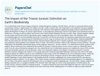 The Impact of the Triassic-Jurassic Extinction on Earth's Biodiversity. (2024, May 28). Retrieved from https://hub.papersowl.com/examples/the-impact-of-the-triassic-jurassic-extinction-on-earths-biodiversity/