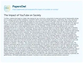 The Impact of YouTube on Society. (2025, Mar 28). Retrieved from https://hub.papersowl.com/examples/the-impact-of-youtube-on-society/