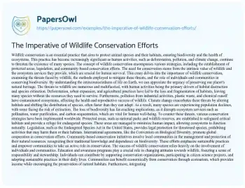 The Imperative of Wildlife Conservation Efforts. (2025, Mar 29). Retrieved from https://hub.papersowl.com/examples/the-imperative-of-wildlife-conservation-efforts/