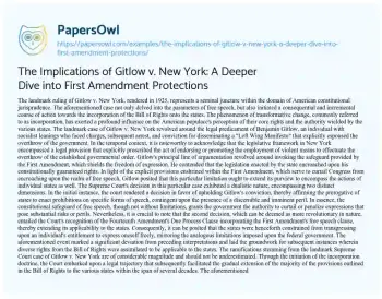The Implications of Gitlow v. New York: A Deeper Dive into First Amendment Protections. (2023, Oct 26). Retrieved from https://hub.papersowl.com/examples/the-implications-of-gitlow-v-new-york-a-deeper-dive-into-first-amendment-protections/