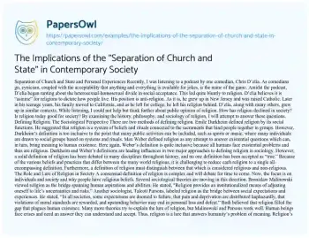 The Implications of the "Separation of Church and State" in Contemporary Society. (2023, Aug 21). Retrieved from https://hub.papersowl.com/examples/the-implications-of-the-separation-of-church-and-state-in-contemporary-society/