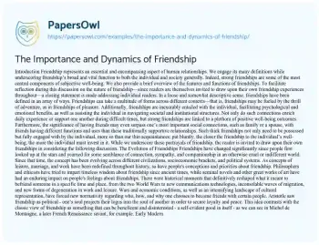 The Importance and Dynamics of Friendship. (2024, Dec 27). Retrieved from https://hub.papersowl.com/examples/the-importance-and-dynamics-of-friendship/