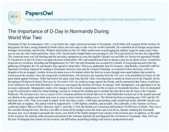 The Importance of D-Day in Normandy During World War Two. (2022, Nov 14). Retrieved from https://hub.papersowl.com/examples/the-importance-of-d-day-in-normandy-during-world-war-two/