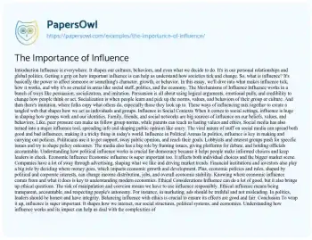 The Importance of Influence. (2024, Sep 17). Retrieved from https://hub.papersowl.com/examples/the-importance-of-influence/
