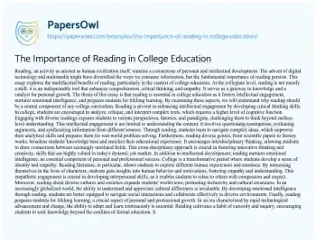 The Importance of Reading in College Education. (2025, Mar 30). Retrieved from https://hub.papersowl.com/examples/the-importance-of-reading-in-college-education/