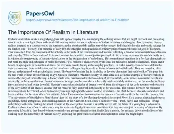 The Importance Of Realism In Literature. (2024, May 01). Retrieved from https://hub.papersowl.com/examples/the-importance-of-realism-in-literature/
