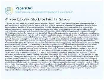 Why Sex Education Should Be Taught in Schools. (2019, Apr 23). Retrieved from https://hub.papersowl.com/examples/the-importance-of-sex-education/