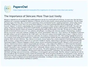 The Importance of Skincare: More Than Just Vanity. (2025, Mar 28). Retrieved from https://hub.papersowl.com/examples/the-importance-of-skincare-more-than-just-vanity/