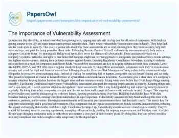 The Importance of Vulnerability Assessment. (2024, Sep 17). Retrieved from https://hub.papersowl.com/examples/the-importance-of-vulnerability-assessment/