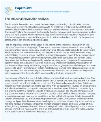 The Industrial Revolution Analysis. (2021, May 17). Retrieved from https://hub.papersowl.com/examples/the-industrial-revolution-analysis/
