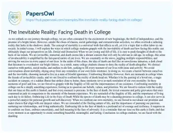 The Inevitable Reality: Facing Death in College. (2025, Nov 07). Retrieved from https://hub.papersowl.com/examples/the-inevitable-reality-facing-death-in-college/