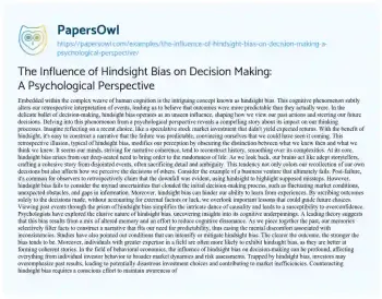The Influence of Hindsight Bias on Decision Making: A Psychological Perspective. (2024, May 21). Retrieved from https://hub.papersowl.com/examples/the-influence-of-hindsight-bias-on-decision-making-a-psychological-perspective/